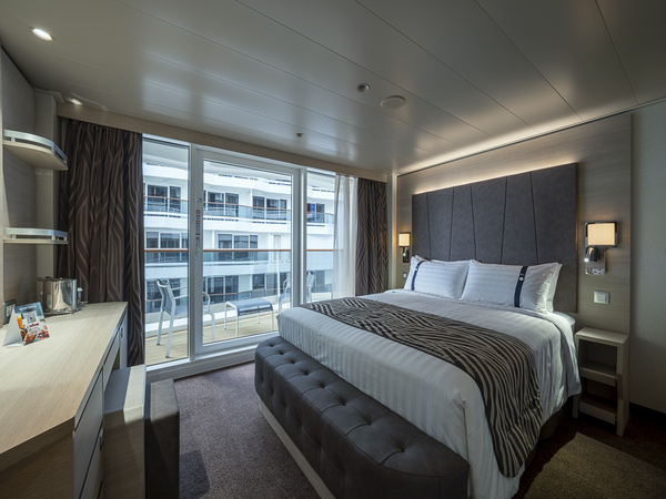 面积约16平方米,带阳台,阳台视角为邮轮内部长廊