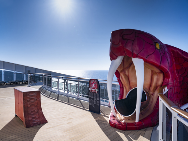 邮轮上还有Venom Drop滑梯,这是海上最长的螺旋滑梯,高达11层,为寻求刺激的游客带来心跳加速的快感。