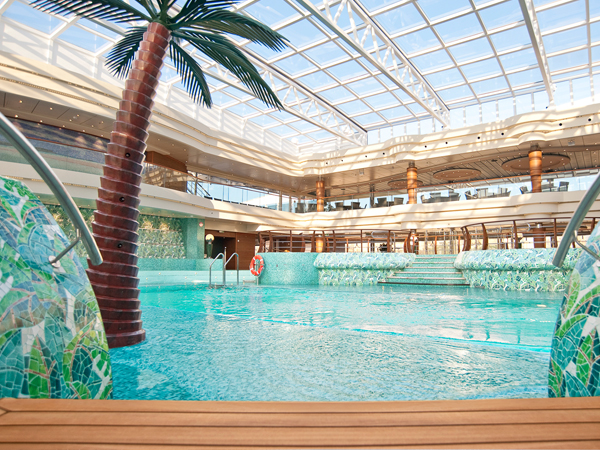– 主甲板泳池,适合家庭使用,旁有酒吧与自助餐区The Playa del Sol Pool